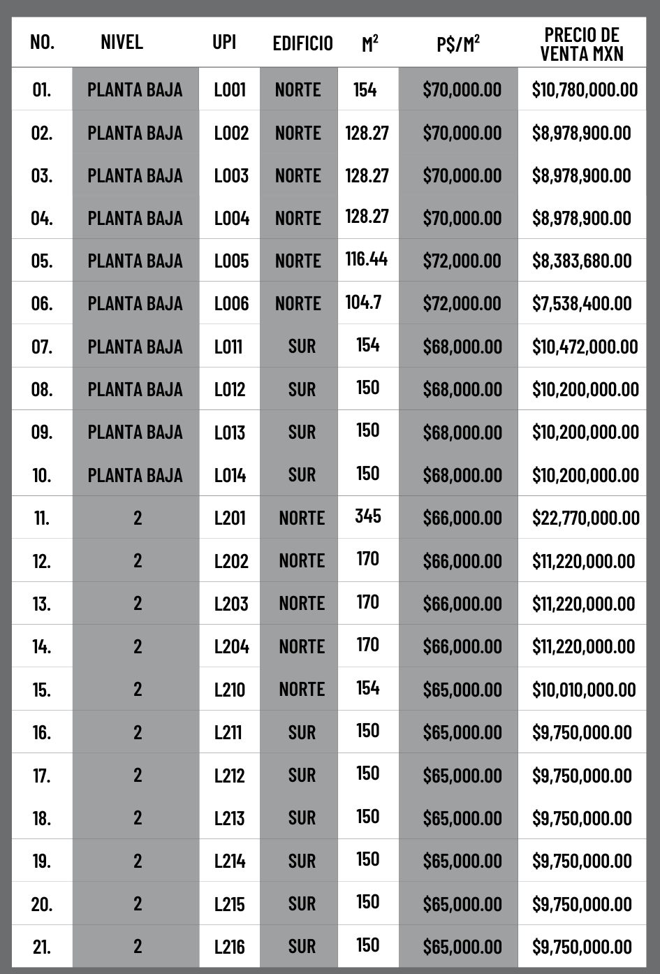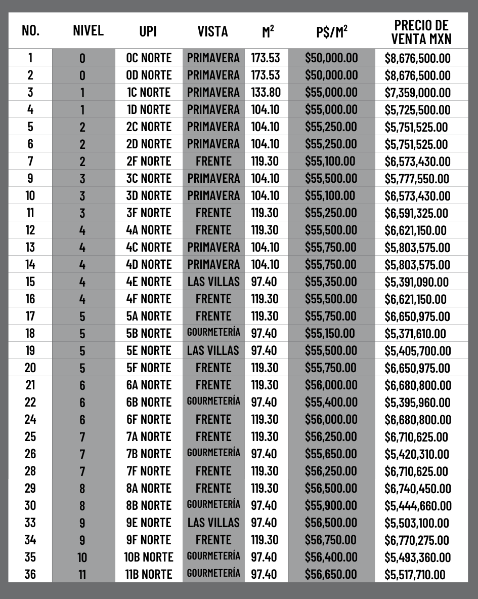PRECIO TORRE NORTE